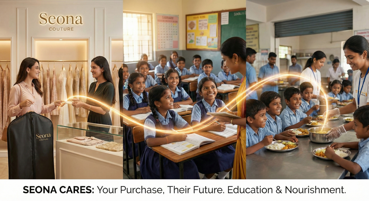Every time you choose Seona—whether it’s a couture outfit, uniforms, embroidery, or t-shirts—you’re not just buying a product; you’re becoming part of a bigger change. A share of our revenue is dedicated directly to these initiatives, ensuring that your purchase leaves a lasting impact in someone’s life.