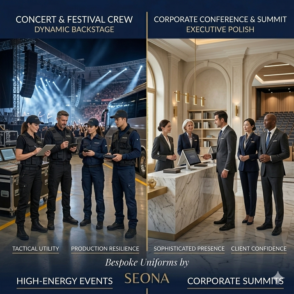 From large-scale music fests to high-stakes corporate summits, Seona Uniforms provides apparel that balances high-end aesthetics with the technical utility required to execute flawless events