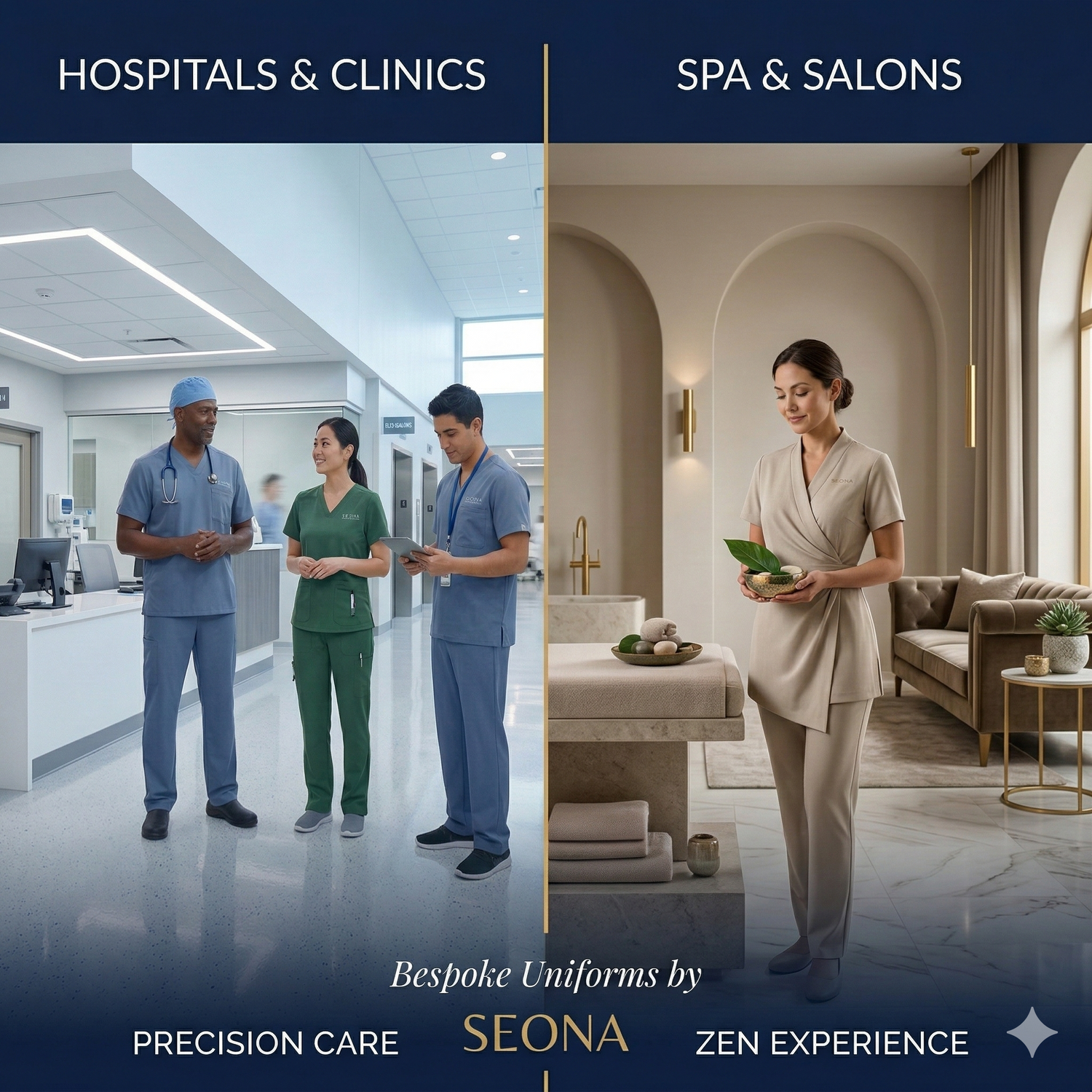 Hospitals and Clinics: Seona Uniforms redefines healthcare apparel by merging clinical-grade functionality with bespoke tailoring. Our collection features antimicrobial, four-way stretch fabrics designed for the rigorous demands of modern medicine, from high-stakes surgical suites to authoritative consultant lab coats, every garment is engineered to reflect the excellence of your institution.