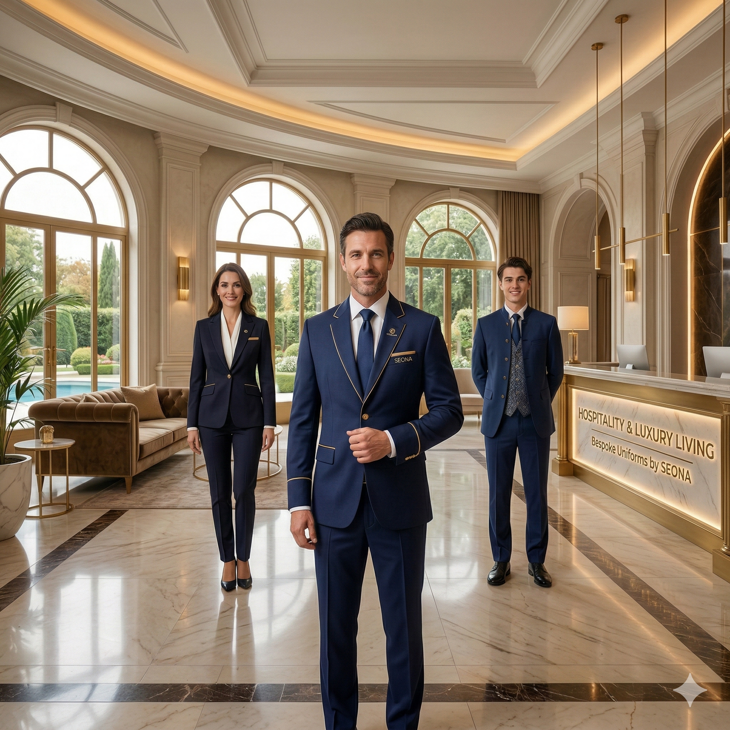 - Hotel & Resorts: Regal silhouettes with gold-piping and premium wool-blends.