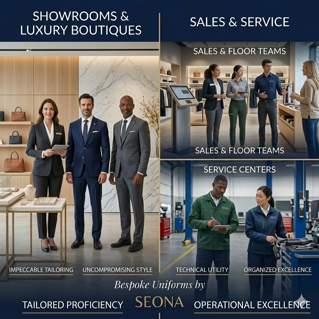 Seona Uniforms redefines Corporate & Professional Services by transforming everyday workwear into a powerful statement of brand authority. Whether it is sharp, high-twist suits for Real Estate professionals, sophisticated smart-casual attire for high-end Retail, or polished uniforms for Support Staff, our garments are engineered for the high-stakes corporate world.